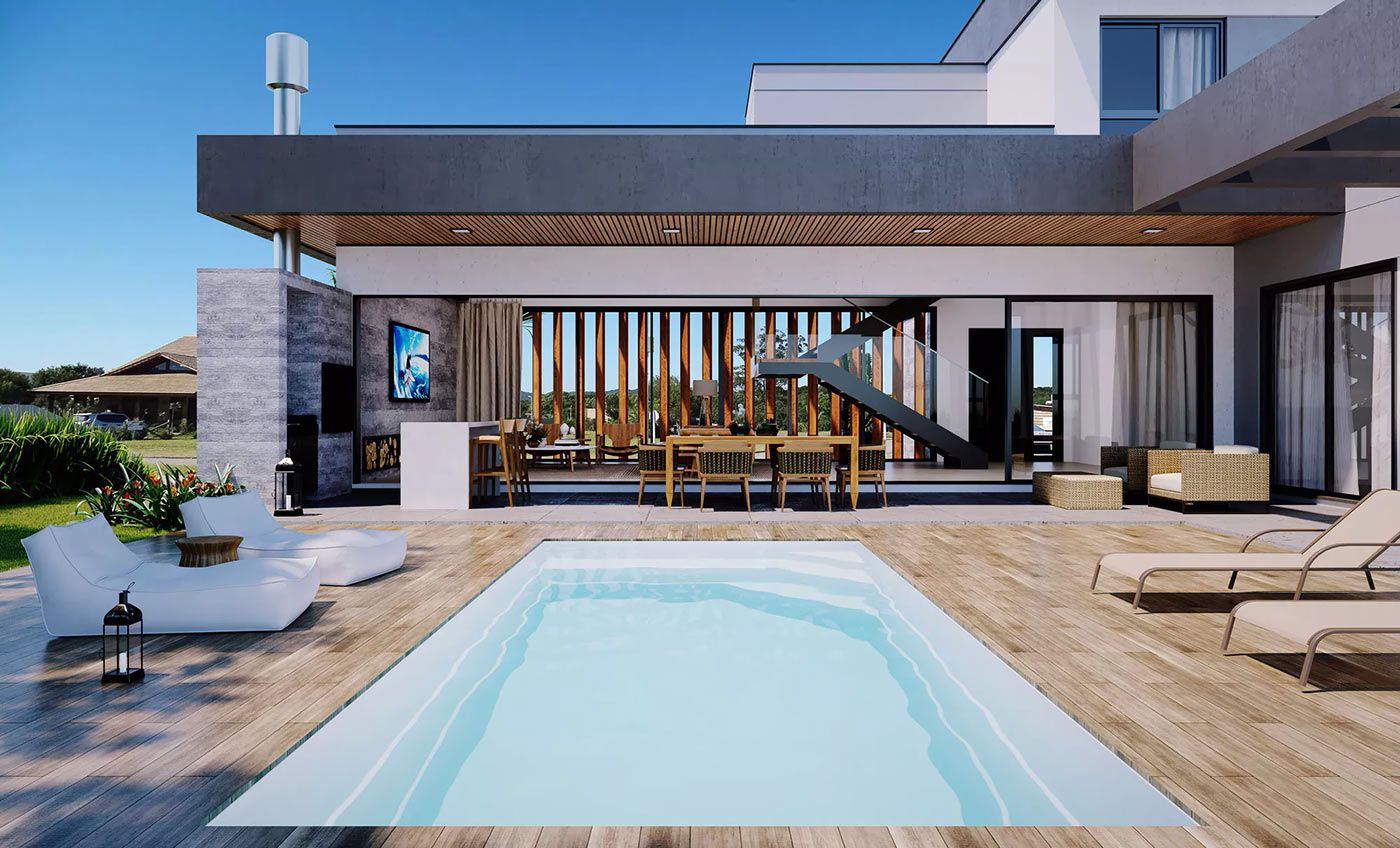 Piscina em fibra modelo Acapulco Fibratec, com design sofisticado!